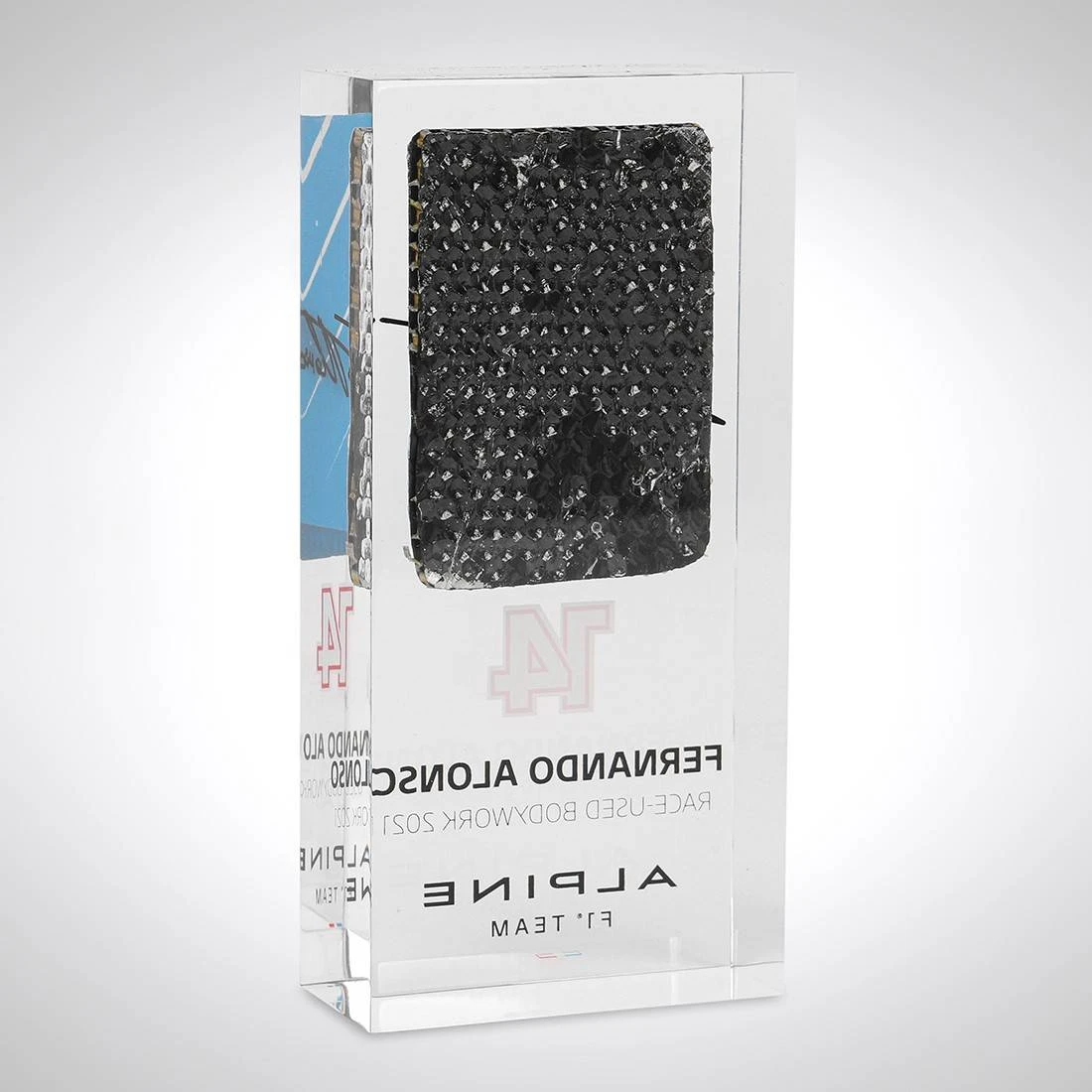 Own a race-used piece of F1 bodywork taken from Fernando Alonso’s 2021 Alpine F1 car, embedded within acrylic.