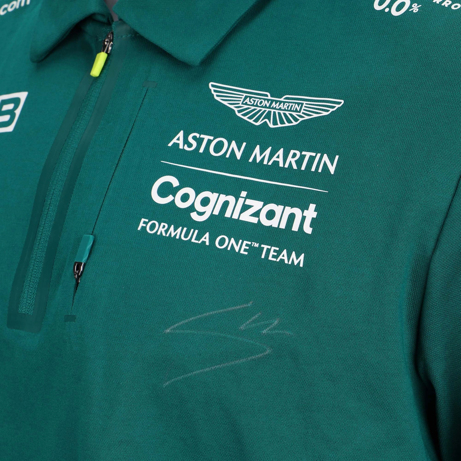 Get your hands on a piece of Lance Stroll F1 memorabilia; this Aston Martin Aramco Cognizant F1 Team polo shirt will be personally signed and ready to display.