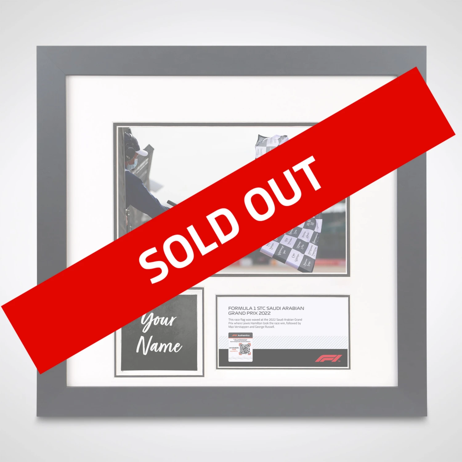 Once again, F1 Authentics is delighted to offer you the chance to have your name printed on a square of the chequered flag, which will be waved at the 2022 Saudi Arabian Grand Prix (27th March), signalling the winner of the race.