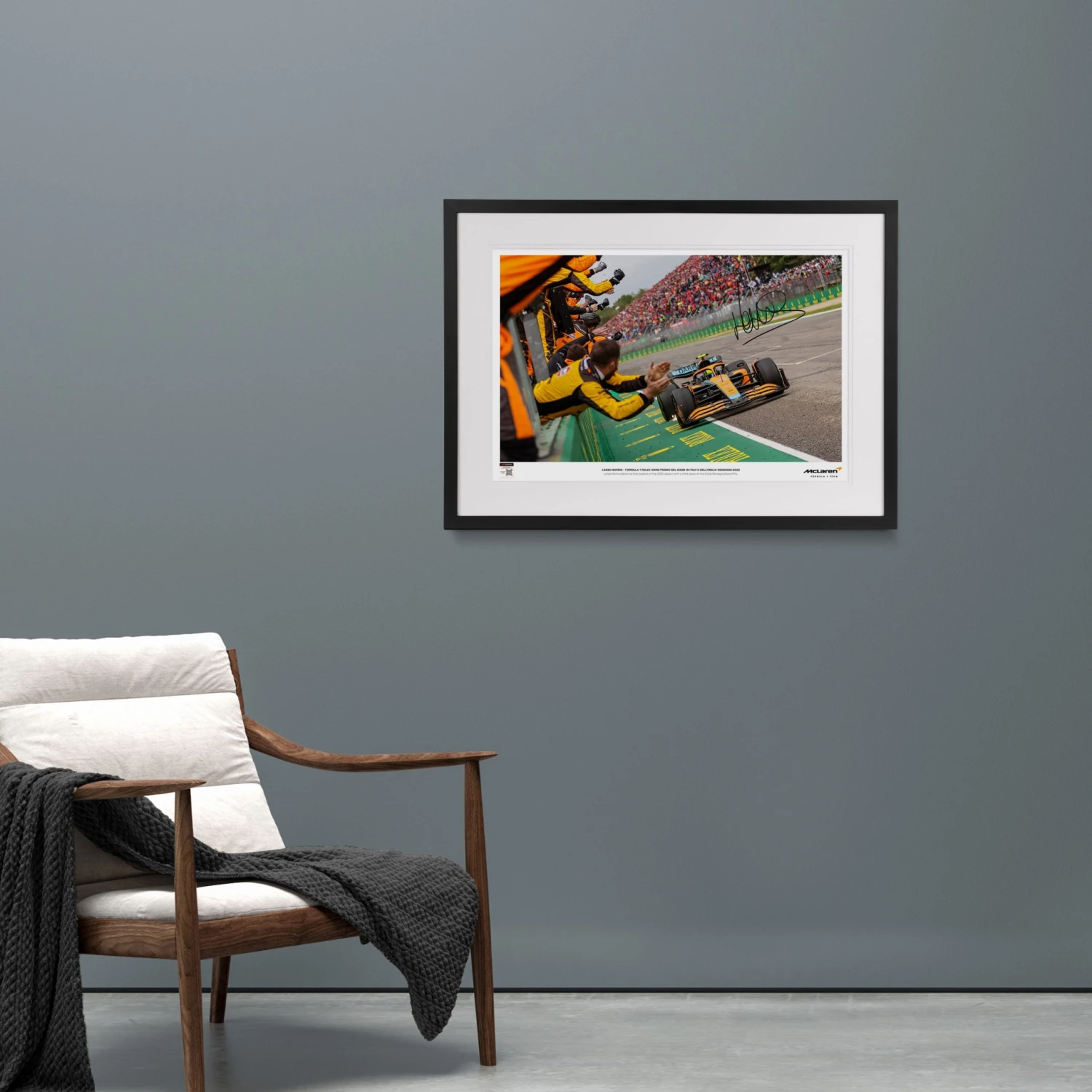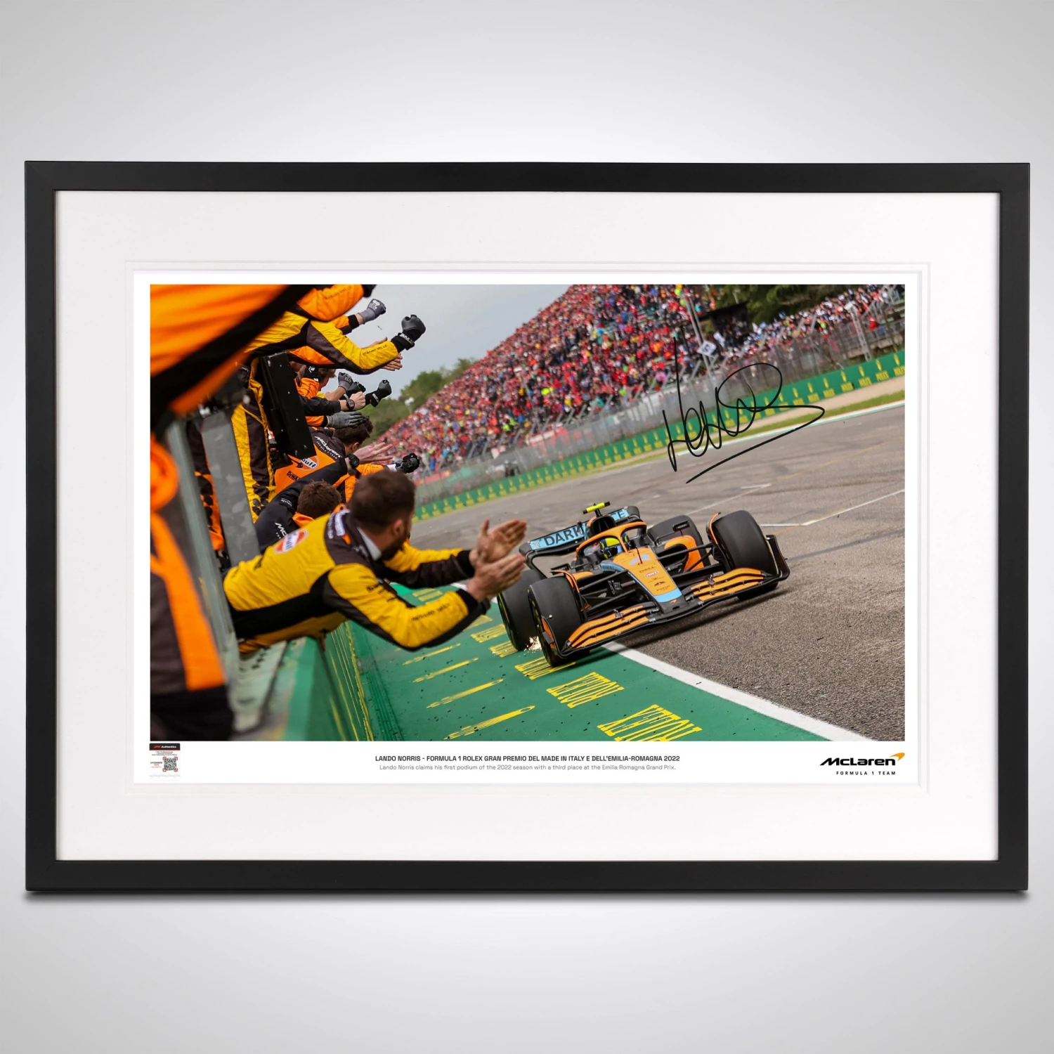 Celebrate Lando Norris’ first podium of the 2022 FIA Formula One World Championship™ with this special photograph of the McLaren F1 driver at the Emilia Romagna Grand Prix, where he claimed third place. This photograph will also be getting signed by Lando himself!