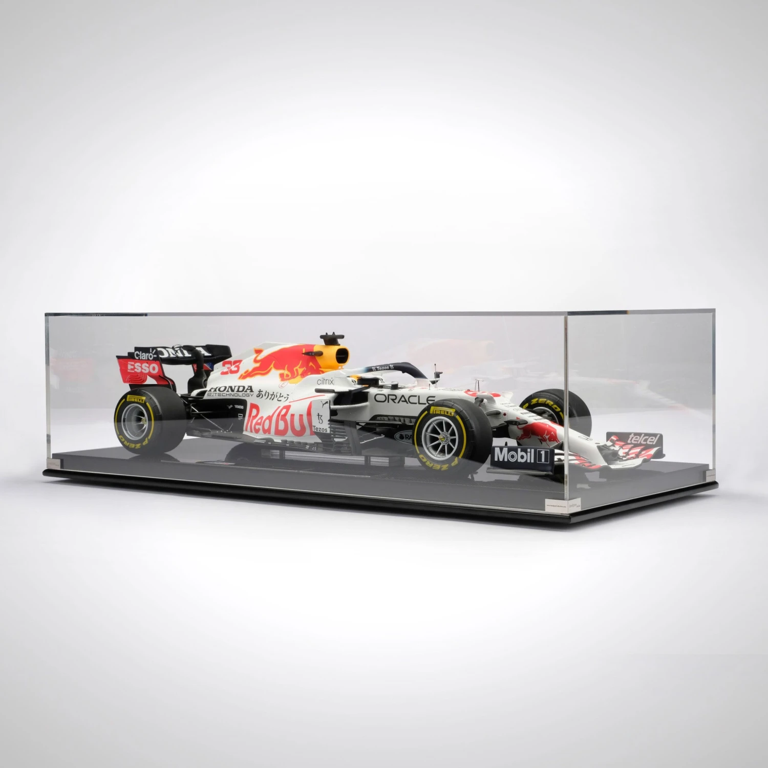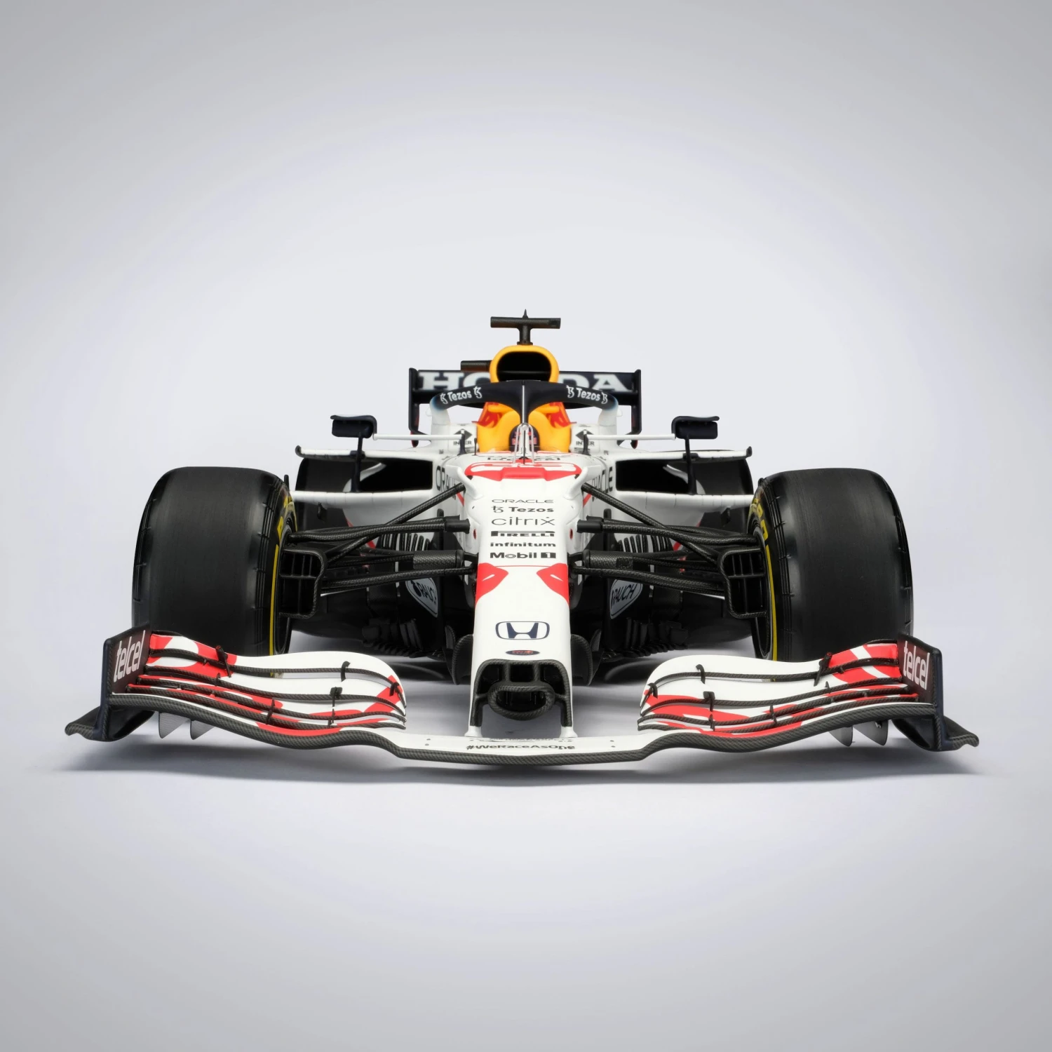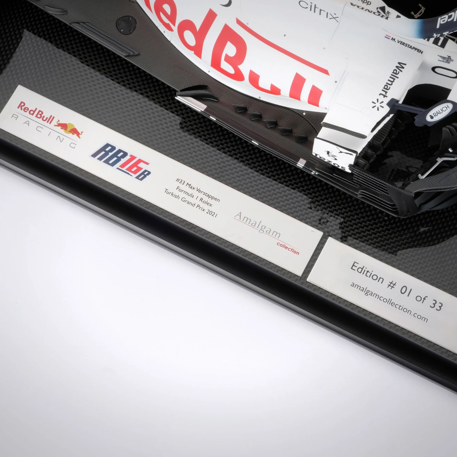 Own a special 1:8 scale model of Max Verstappen’s Red Bull RB16B race car, featuring the special liveries that were displayed on the cars for the 2021 Turkish Grand Prix. The special white liveries paid tribute to the team’s engine partner, Honda.